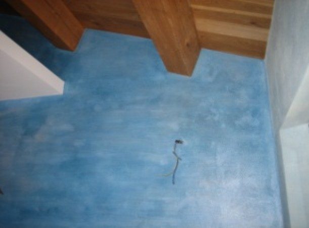 Lavoro di decorazione sulle pareti con velature di tinta a calce con vari toni e texture materiche Laccature delle porte con l’applicazione della foglia in rame.
